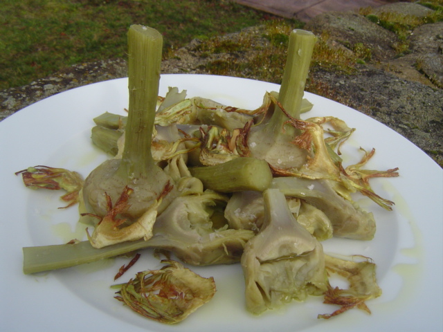 La receta que propongo solo tiene dos ingredientes principales: unas buenas alcachofas y un poco de aceite de oliva virgen extra. Sabores naturales y sin filigranas ni artificios, muy apropiada para desengrasar el cuerpo debido a las propiedades diuréticas de las alcachofas, vegetariana y sencilla hasta decir basta. En muchos hogares navarros la conocen bien. La demostración de que “solo lo suficiente es más”.