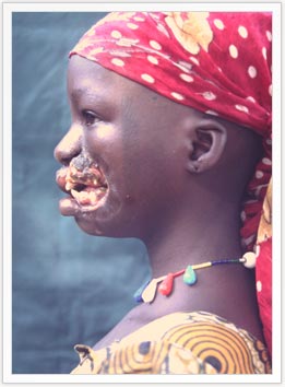 El noma mutila el rostro del niño, produciéndose finalmente una dolorosa agonía. En alguno de los casos los niños son abandonados debido a la superstición tribal.