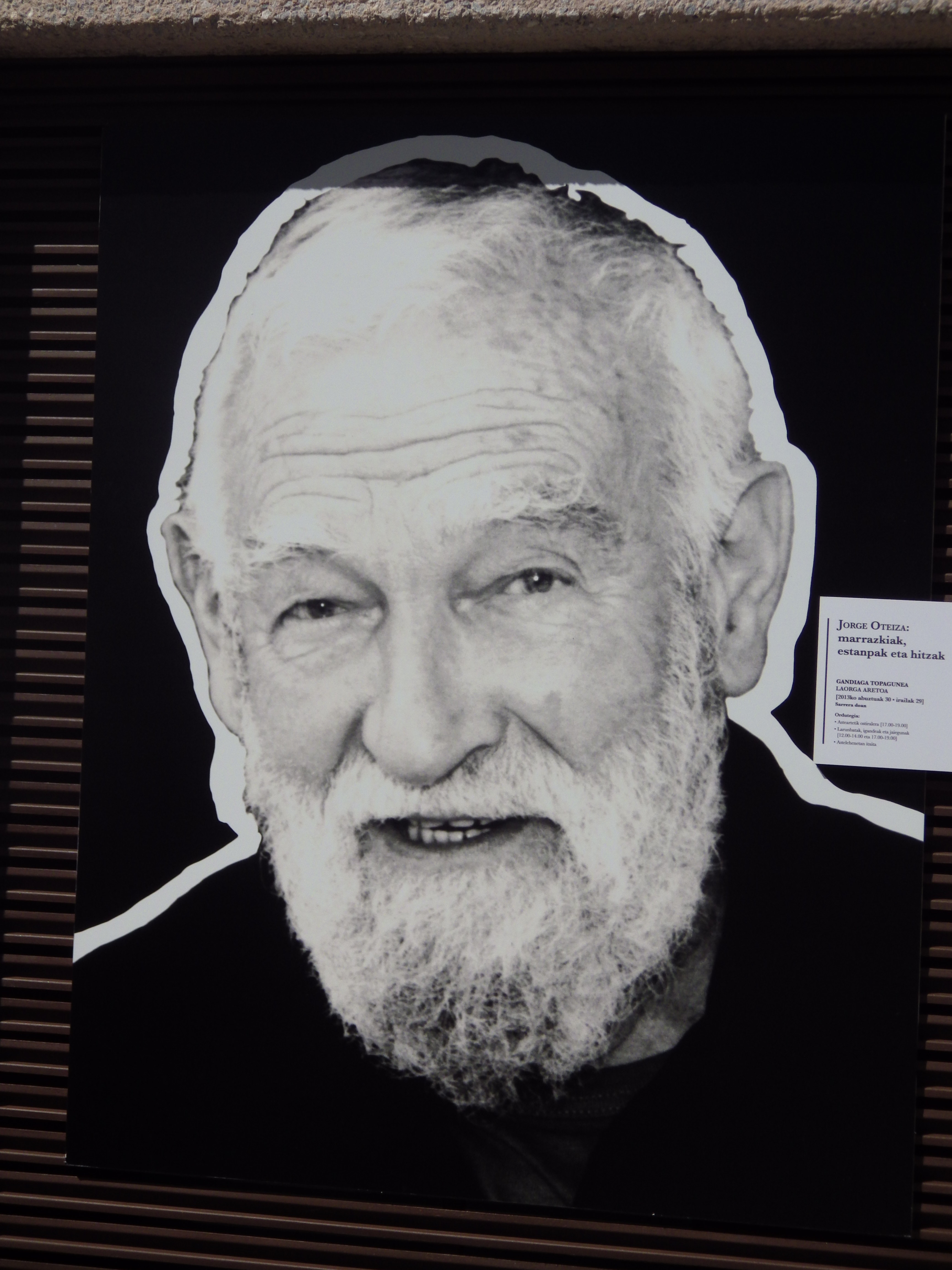 (…) Oteiza era un espectáculo: si tenía público, se crecía aún más. Cuando alguien quería obsequiarle se repetía la ceremonia de la comida con ostras, mero o rodaballo y el trago final. Una vez, grandes directivos del entonces Grupo Correo le rindieron un pequeño homenaje privado. Oteiza protagonizó una memorable actuación en la que provocó, rió, habló de amistad, más “en Oteiza” que nunca… Lastima de grabadora.(…) 101 vascos y medio. Bestiario portátil. Mitxel Ezquiaga.