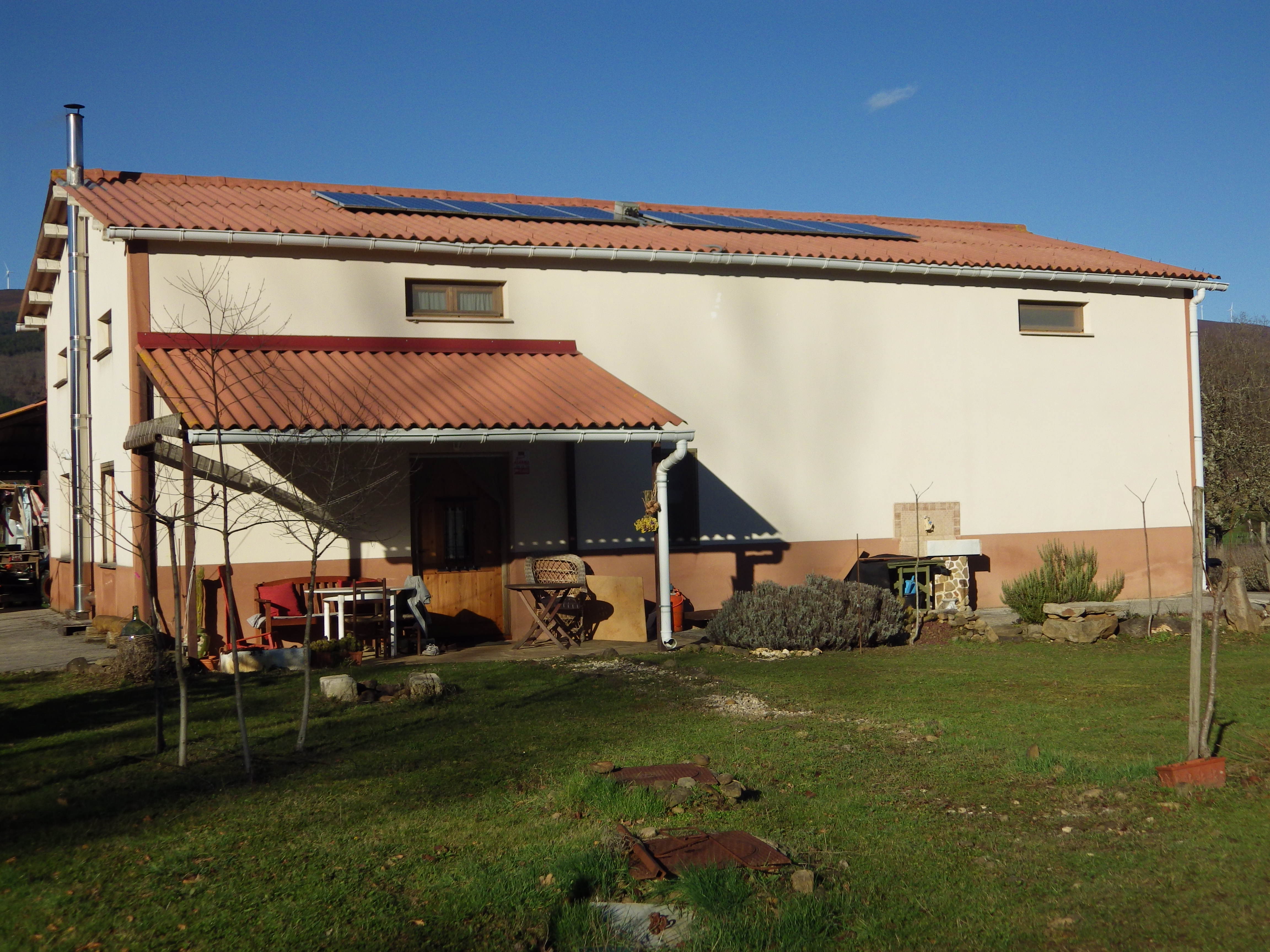 Mientras, nos acercamos al pequeño edificio donde comparten espacio bodega y vivienda. Es un edificio autosuficiente, allí no llega ningún cable ni de luz ni de otro tipo. Con unas placas solares y una cocina económica tienen para abastecerse de energía y para caldear la vivienda. Las aguas residuales van hasta una pequeña balsa que construyeron ellos mismos, donde desaparecen  por evaporación. Huyendo del frío solano nos refugiamos en la cocina. Un té calentito y seguimos charlando. Koldo vive habitualmente en Ibarra (Gipuzkoa); es profesor de biología en un instituto de Gasteiz y compagina esas tareas con las de bodeguero. Heredó las fincas de su madre hace unos 20 años y junto con sus hermanos pensaron, desde un principio, en elaborar sidra natural respetando al máximo el legado que su familia le había dejado. Comenzó  a comprar variedades de manzanos gipuzkoanos, algunos asturianos y los propios de la zona de Barrundia, que según cuenta, en la antiguedad tuvieron cierta fama en los mercados locales. Descubrió con sorpresa,- el pensaba por aquel entonces que era un innovador-, que en algunos caserios  de la zona ya se hacía sidra. En Baltia, un barrio de dos baserris pertenecientes a Narbaiza, Narciso Otxoa de Zuazola elaboraba sidra casera . Narciso le enseñó unos manzanos centenarios que su familia tiene en el Molino de Narbaiza. Arboles muy viejos, de una variedad de manzana desconocida para él, todo un descubrimiento sorprendente y un pequeño tesoro según me cuenta Koldo.