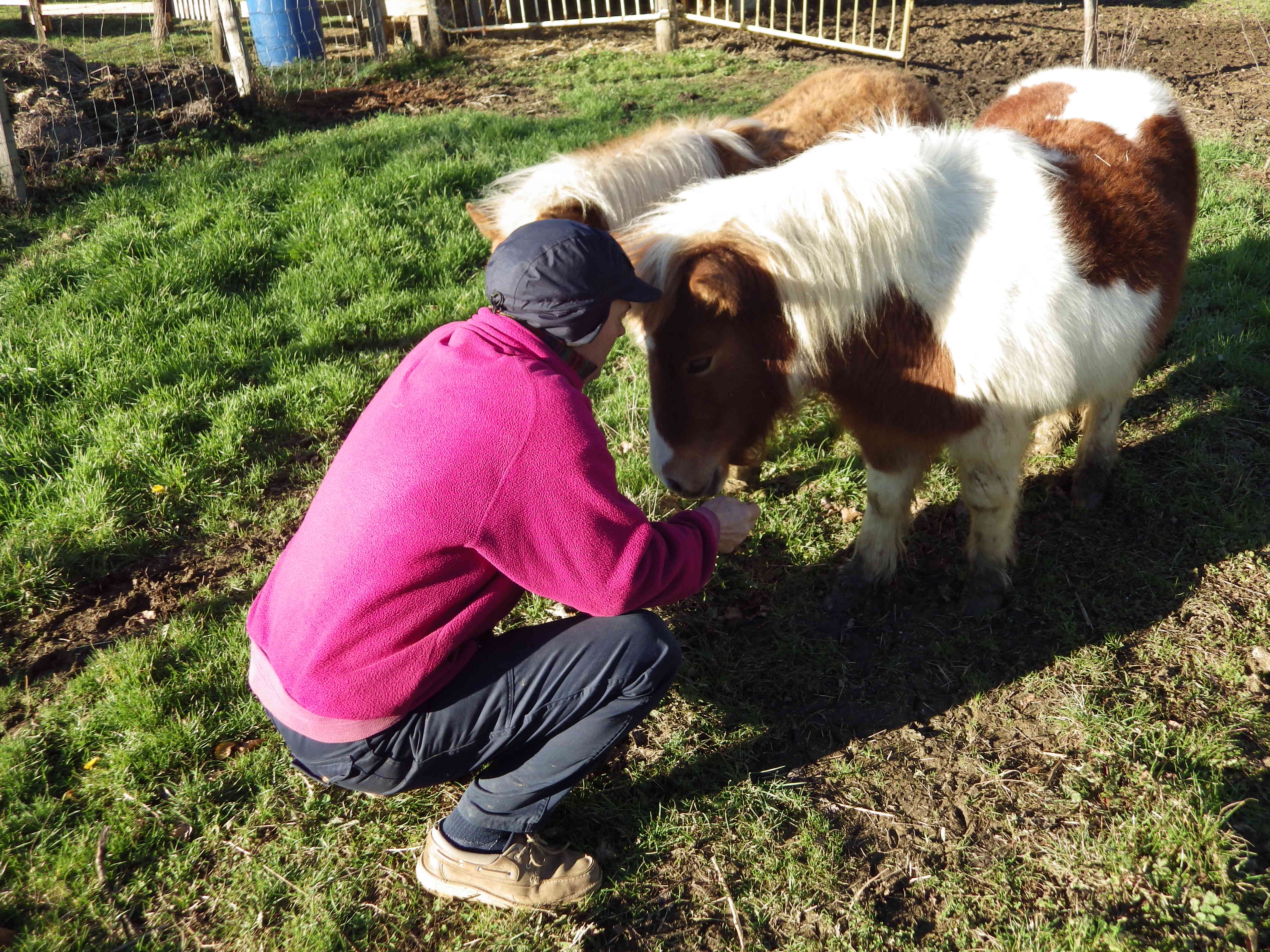 Lo encuentro cociendo unas conservas de legumbres en un gran perolo. Me explica que es un tipo de cocción de inspiración macrobiótica llamada cocción angélica. Hace frío; desde hace unos días en esta zona sopla un jodido solano . Bien abrigados damos un paseo por las dos hectáreas donde tiene los manzanos. Variedades diferentes, árboles injertados, podas, recogida de la manzana, de todas estas cosas vamos hablando mientras recorremos la finca. La hierba entre los manzanos parece cesped, ni una brizna más alta que otra. Le pregunto como consigue tener tan txukuna los terrenos. Son los jardineros los que hacen el trabajo de siega, me reponde, cuatro ponys que abonan y matienen limpias las fincas y debido a su pequeño tamaño no interfieren en el desarrollo de los manzanos; también los utiliza para los trabajos de la huerta. Cuatro miembros más de la familia.