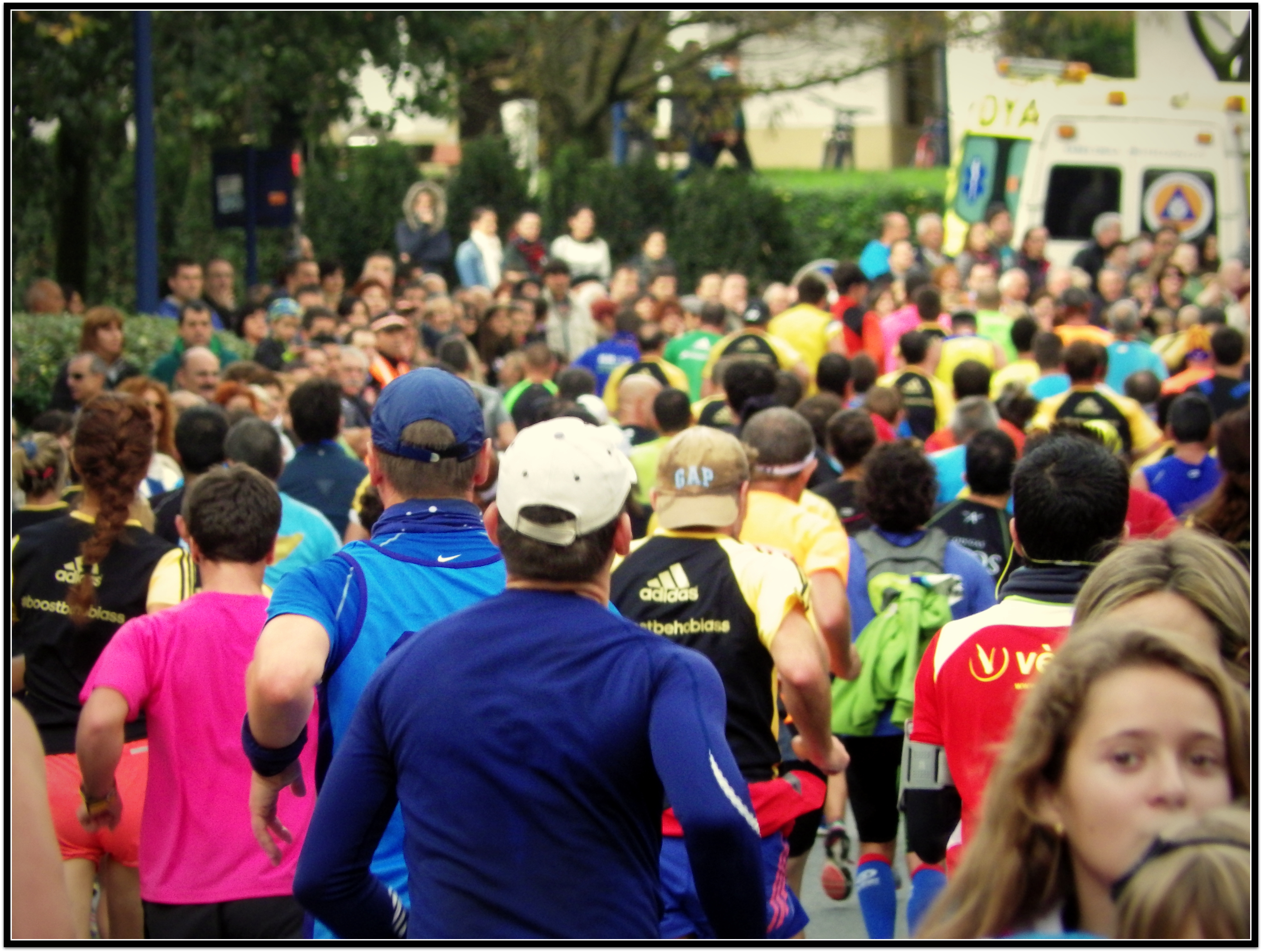 Ya es domingo y Rentería desde primera hora de la mañana espera el paso de la Behobia, gente en las aceras esperando el paso de los corredores, llegan los primeros, aplausos y gritos de ánimo, van pasando discapacitados tumbados en esos espectaculares artilugios. ¡Que vienen los rollers!, oigo a mi derecha, y salvando los pasos elevados de peatones un grupo de patinadores desfila ante la gente con esa típica coreografía. Más gente en las aceras, más corredores y corredoras, más gritos y aplausos hasta convertirse en una constante que dura varias horas.